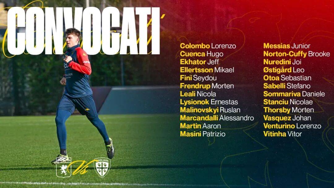 意甲联赛:热那亚斯坦丘离队,卡利亚里再战伤心地