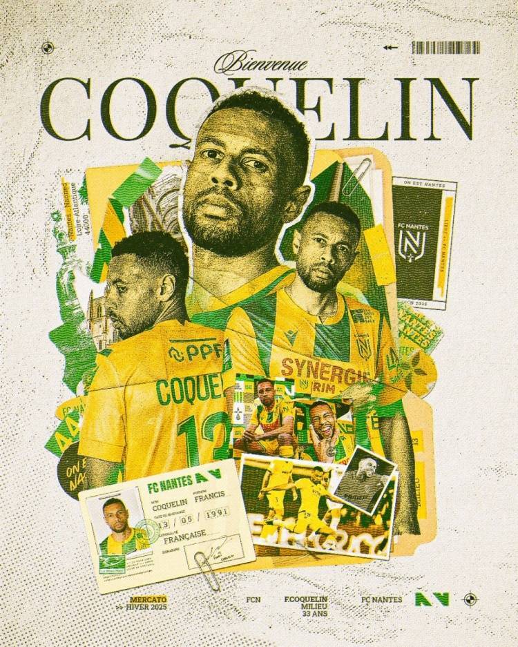 现年34岁的科奎林是法国中场,曾在阿森纳、瓦伦西亚、比利亚雷亚尔等俱乐部效力,去年夏天和比利亚雷亚尔合同到期。科奎林在冬季转会期自由加盟南特,当时双方只签约到今年6月。